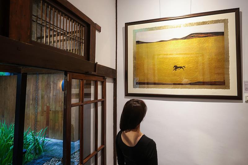 最令人迷醉的,莫過於那座引自日本傳統工法打造的「枯山水」庭園。當光影穿過木格柵落入室內,隨著季節與時分流轉,金箔版畫在日式長廊的幽靜背景下,散發出隨光變幻的靈動氣息。在枯山水石濤的靜謐感襯托下,常玉筆下的馬兒與美景顯得更加優雅動人。