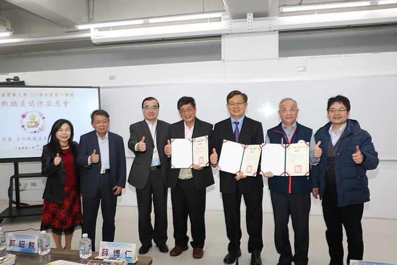 本校114學年度第1學期退休教職員分別是醫務管理學系蔡文正特聘教授、中國藥學暨中藥資源學系郭昭麟教授、牙醫學系陳遠謙副教授、醫學系陳安琪副教授、校安中心楊梅生教官等5位。