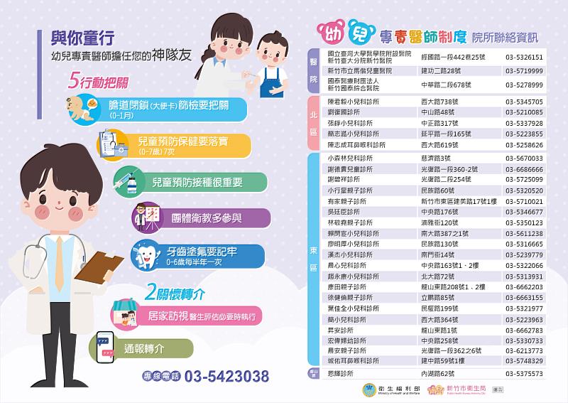 竹市幼兒專責醫師制度布建率、涵蓋率雙達100%