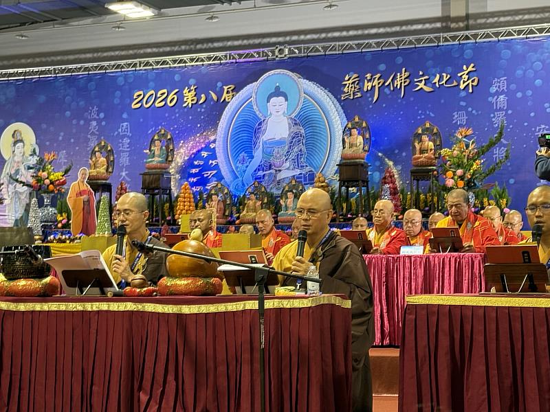 (中央社訊息服務20260117 13:45:23)新北市政府與慈法禪寺共同主辦「2026年第八屆藥師佛文化節」,今(17)日起連2日在圓山花博爭豔館舉行,副市長劉和然出席首日啟建上淨下耀大和尚圓寂周年紀念法會暨「慧海常淨.法光長耀」追思座談會與墨寶回顧展,透過莊嚴法會與文化活動,緬懷其一生弘法利生、淨化人心的精神,並引領大眾齊修善念,為全球祈福,願眾生安樂。