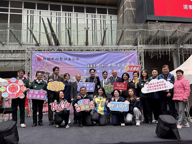 (中央社訊息服務20260117 18:20:36)新竹市竹塹社區大學今(17)日在遠東巨城購物中心舉行「114年秋季期末成果展暨115年春季新課程體驗」。副市長邱臣遠代表市長高虹安出席,感謝竹塹社大教職團隊的耕耘,並肯定學員活到老學到老的終身學習精神,現場活動內容豐富,從靜態展示到動態新課程體驗,展現出竹市充沛的社區文化與學習活力。