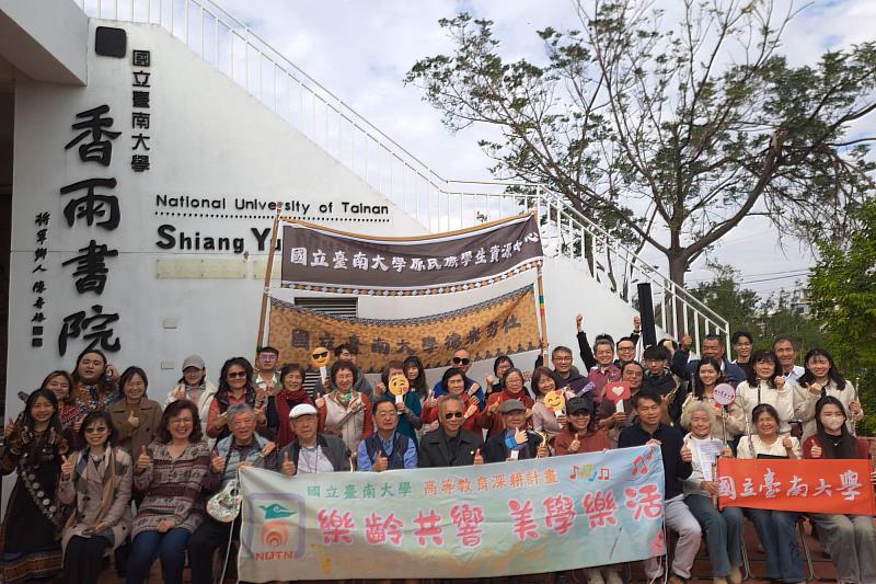 (中央社訊息服務20260119 10:21:12)音樂旋律在香雨書院悠然流轉,笑容與掌聲交織出世代共學的溫暖畫面。國立臺南大學高教深耕「樂齡共響・美學樂活」計畫於115年1月10日在將軍區香雨書院舉辦戶外藝術展演活動,呈現計畫推動以來的學習成果。活動結合學生與社區樂齡族群共同演出與藝術導覽,透過音樂與美學交流,實踐世代共學與社區參與理念,吸引逾80位民眾到場共襄盛舉。