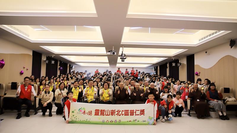 靈鷲山普仁獎新北C區頒獎典禮1月17日下午在新北市樹林區育林國小禮堂舉行,新北市教育局長張明文、民政局長林耀長與地方長官、民意代表、各中小學師長及各界貴賓齊聚一堂,共同為獲獎學子送上祝福。3位獲獎學生蘇一榛、戴婕瓴、邱毓縈上台分享生命故事,現場氣氛溫馨感人。