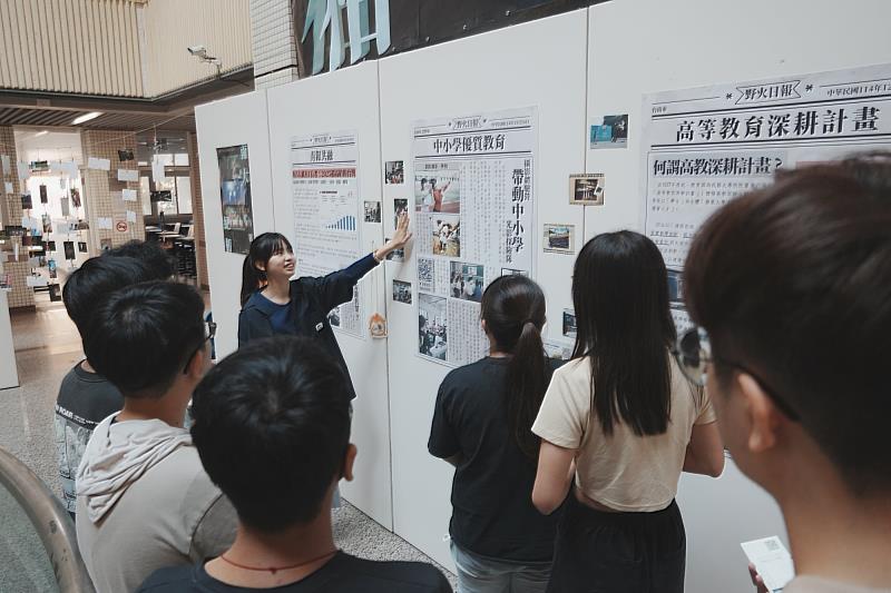 (中央社訊息服務20260119 10:39:46)國立臺南大學南瀛野火大眾傳播社於114學年度上學期結束前舉辦「高教深耕成果展」。本次展覽由生物科技學系二年級陳俞均同學擔任策展人,呈現社團本學期參與教育部「高等教育深耕計畫」的實踐成果,將大眾傳播專業轉化為回應社會議題的具體行動。