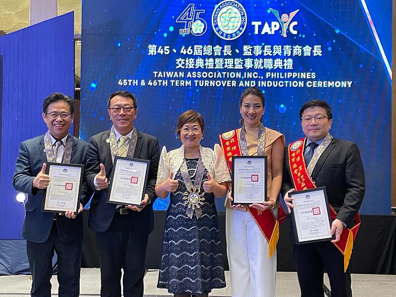 菲律賓臺商總會1月18日在馬尼拉舉行「第45、46屆總會長暨監事長交接典禮」,僑務委員會委員長徐佳青出席,在駐菲律賓代表處大使周民淦及總統府國策顧問林凱民共同監交下,見證卸任總會長林登峰與新任總會長謝佳蓁的印信交接,象徵菲總薪火相傳、世代接棒。