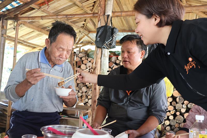 為讓黃阿公年末也能享圍爐團聚的熱鬧,伊甸一行人翻山越嶺,在蜿蜒山路上行駛近40分鐘才抵達黃阿公家。正在忙著清洗桌椅的黃阿公,一看到伊甸夥伴,臉上就笑開了花,就像期盼已久、終於等到兒孫回家的長輩。在大家的陪伴下,黃阿公胃口比平常更好,話也變多了,講到興奮處還會開心地手舞足蹈起來。一頓飽餐後,呂怡蓁將準備好的紅包給了黃阿公,約好明年再見。
