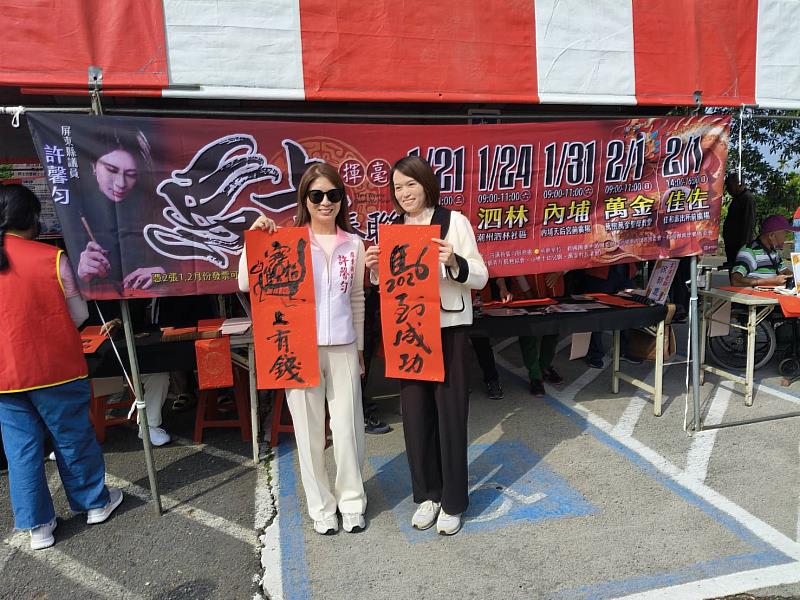 (中央社訊息服務20260122 10:29:27)隨著新春佳節腳步近了,為傳承中華傳統文化並增添年節喜慶氣氛,救國團屏東縣團委會特別於115年農曆春節前夕,結合多方單位共同策劃「2026新春揮毫贈春聯」活動。本次活動將巡迴屏東縣內多個鄉鎮,邀請書法名家現場揮毫,將滿滿的祝福化作墨香,免費贈送給在地鄉親,祈願新的一年萬事如意、平安順遂。
