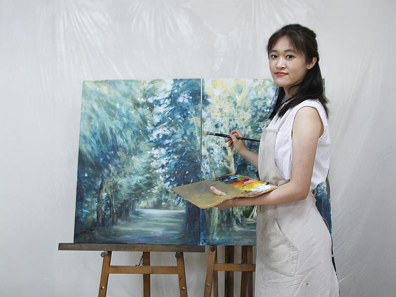 卜馨賢的創作關注觀看本身的不穩定性。她以自然景象為經驗起點,透過層層疊合的筆觸與霧化處理,削弱景物的清晰輪廓,使畫面失去明確的焦點。樹木、花草與光影不再是被再現的對象,而成為感知生成的媒介,讓觀看停留在如朧日般的時間狀態之中。