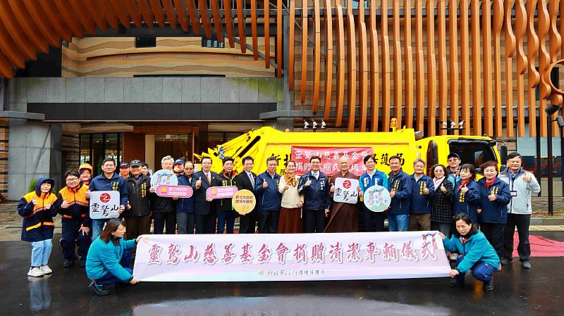 新北市環保局則指出,隨著城市發展,清運量與作業路線逐年增加,使第一線人力與設備面臨沉重負荷 。此次靈鷲山捐贈清運車輛,不僅能有效補強地方量能,更可加速設備汰換並提升整體效率,充分展現民間團體對基層公共服務的堅定支持 。