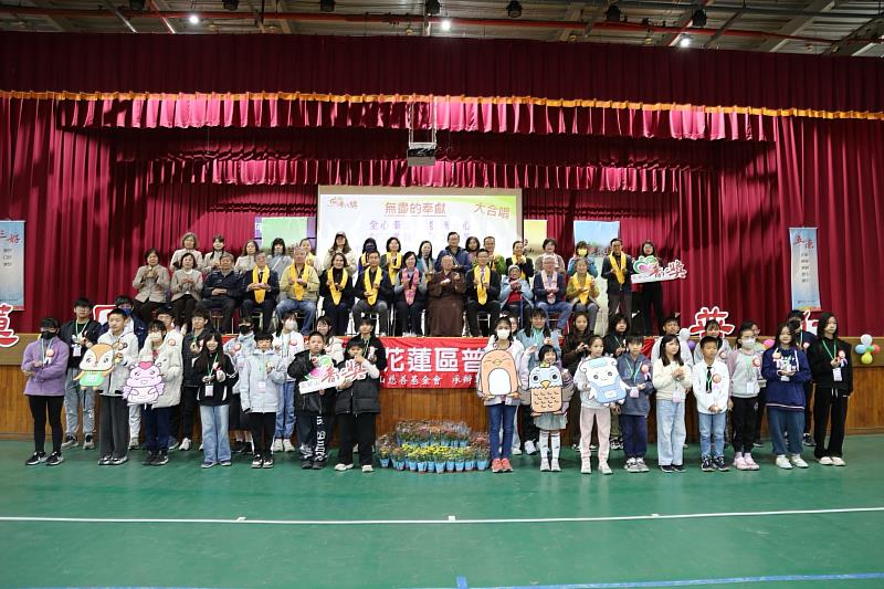 (中央社訊息服務20260124 17:52:29)靈鷲山普仁獎花蓮區頒獎典禮,1月24日在去年洪災曾是重災區的花蓮縣光復商工學生活動中心舉行,花蓮縣教育處長翁書敏、花蓮縣議長辦公室主任張宸瑋、花蓮縣政府中區服務中心主任孫春玉、光復鄉公所機要李天崴、11位校長等眾多貴賓、師長、親友們都出席盛會。雖然外面是細雨緜緜的陰冷天氣,但36位得獎的小太陽與現場精彩的表演熱力四射,讓會場洋溢著溫暖,既榮耀又溫馨。