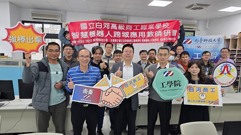 (中央社訊息服務20260126 15:45:05)為協助基層技職教育精準對接國家產業發展,南臺科技大學與國立白河高級商工職業學校於今、明兩天(26-27日)盛大舉辦「智慧機器人跨域應用教師研習」。本次活動是雙方攜手推動「智慧機器人增能課程」的重要環節,旨在因應行政院於2025年5月正式拍板「智慧機器人產業聚落」落腳台南柳營後,帶動區域產業轉型所需的龐大高階人才需求。透過南臺科大「實作型AI科技大學」的研發能量,大手攜小手引領高職教師掌握前瞻技術,為即將到來的柳營智慧產業新時代預備頂尖師資。