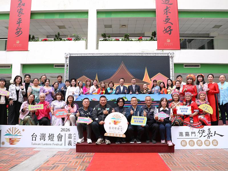 (中央社訊息服務20260127 10:35:57)嘉義縣政府26日在縣府中庭舉辦「2026台灣燈會-新住民燈區」宣傳記者會,以「進嘉門・伊嘉人」為主題,透過一場情感豐沛的開場走秀,揭開燈區策展理念。