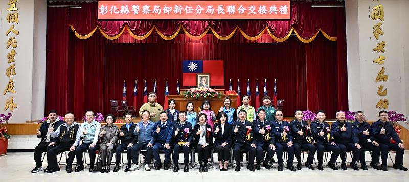 (中央社訊息服務20260127 10:44:03)彰化縣警察局於26日下午1時在警察局6樓禮堂舉行彰化、鹿港、溪湖及芳苑分局卸、新任分局長聯合交接典禮,會中由彰化縣長王惠美致詞勉勵,各級民意代表及各界貴賓到場共襄盛舉。