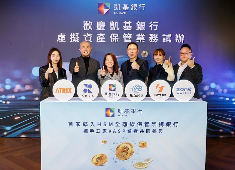 本次虛擬資產保管業務試辦,凱基銀行邀請符合主管機關規定且具代表性的虛擬資產交易平台共同展開合作,包括Atrix 跨鏈、BitoPro 幣託、HOYA BIT禾亞、XREX 鏈科,以及ZONE Wallet拓荒等5家VASP平台業者(依字母排序),5家虛擬資產交易平台將部分虛擬資產轉存至凱基銀行設置之冷錢包保管。凱基銀行透過與業者緊密合作,提供符合監管要求且具高度安全性的保管服務,達成風險分散之目的,參與保管試辦的平台業者亦展現共同健全產業發展的企圖心,努力加強交易所會員用戶對資產安全的信任與信心。