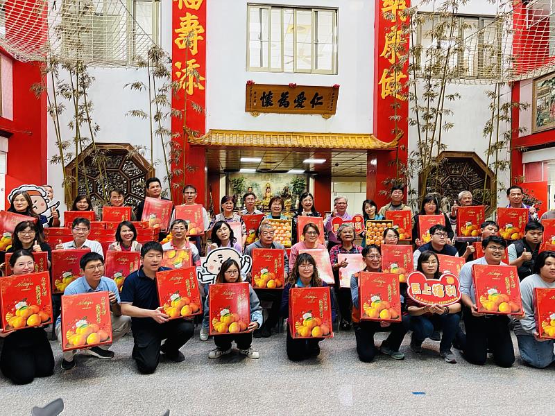 台農發2025年、2026年皆響應翁縣長「年菜送暖,溫馨我嘉」,搭配年菜加送1500箱椪柑送暖,這次再捐出400箱椪柑禮盒,盼住宿機構住民能感受年節氣氛,祝福各機構與弱勢家庭「大桔大利」,溫馨迎接新年。