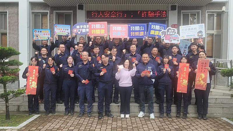 活動尾聲,吳議長與分局及各所同仁開心合影,現場洋溢溫馨氣氛。她以「新春大吉、馬上幸福」祝福大家,期盼新的一年臺東更加安全宜居。隨行議員也肯定警方長期在偏鄉與山區的付出,強調將持續爭取裝備、廳舍及執勤資源,做基層最有力的靠山。這場跨及平地與南橫山區的慰勞行程,不僅是物資補給,更是對警察同仁最實質的精神鼓舞。該分局全體員警表示,將把各界關懷化為力量,全力投入「115年加強重要節日安全維護工作」,守護臺東鄉親平安,讓每一位返鄉遊子都能安心團圓、歡喜過年。另於春節期間,將加強巡邏密度、返鄉車潮疏運及防制酒駕,民眾若有舉家外出住居安全維護、提領大額現金護鈔或緊急協助需求,皆可撥打110或向就近分駐(派出)所申請。警方也呼籲提高防詐意識,遇可疑來電務必撥打165查證。