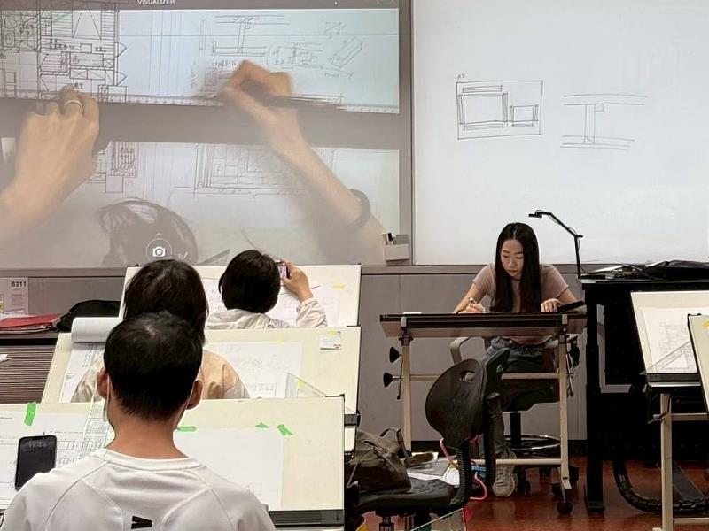在112年度國家考試中,更有學員在張合謙老師指導下,以術科成績85.5分榮登全國榜首,創下亮眼紀錄。課程設計強調理解與實作並重,從基礎線條訓練、空間比例與家具尺度建立開始,逐步進入透視表現與圖面整合。張老師指出,這套訓練不僅是為了應對考試,更是協助學員建立未來在設計實務中能反覆運用的核心能力,而非流於短期應試技巧。