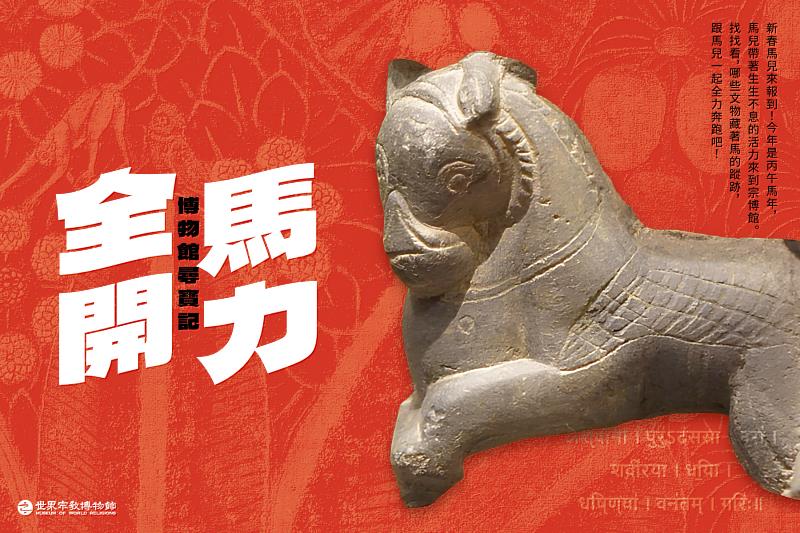 馬在世界各地的宗教文化中,象徵速度、力量與重生的希望。今年馬年開春,宗博館別出心裁,以「馬」為線索,精心設計「九宮格尋寶任務」,在世界宗教展示大廳、金色大廳等不同宗教的展櫃文物或建築模型之中,尋找馬的蹤跡。