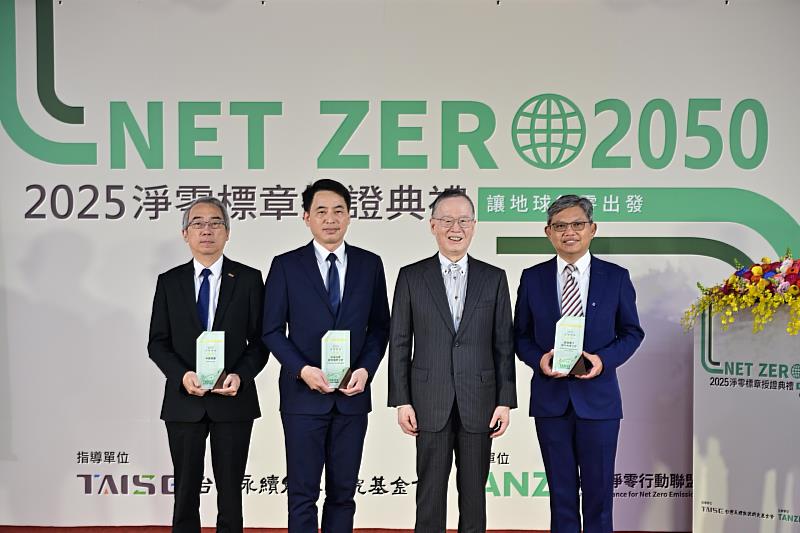 (中央社訊息服務20260213 11:46:10)由台灣永續能源研究基金會(TAISE)所舉辦的2025年淨零標章授證典禮2025年12月23日登場。來自製造、科技、金融、醫療及服務業的多家企業與機構齊聚一堂,完成授證。包括以減碳成效顯著獲得金級標章的中鼎集團、聯華電子、中強光電,得到銀級的亞洲水泥、玉山金控,以及獲得銅級標章的亞東預拌混凝土、信義房屋、富采控股等20家表現傑出企業,都派代表親臨現場領獎。現場更可見各界代表交流盤查經驗、比較減量進度,氣氛熱絡,顯示淨零轉型已逐漸從宣示目標,走向實際行動與制度化推進。