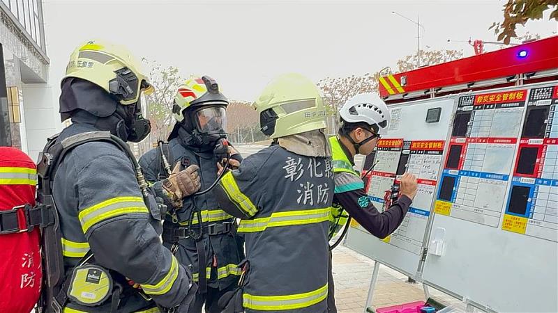 此外,因應寒假及農曆春節連假期間旅宿人潮增加,彰化縣消防局亦於研討會後辦理搶救演練暨後勤照護示範演練。透過實地演練,除強化轄區分隊針對高層建築災害之兵棋推演與實作能力外,亦結合本年度事故安全官制度正式推動及落實後勤照護指引,全面提升救災現場安全管理作業、戰術運用及後勤整備能量,使同仁熟悉作業流程並建立救災默契,落實「救災安全、救災有效」之目標。