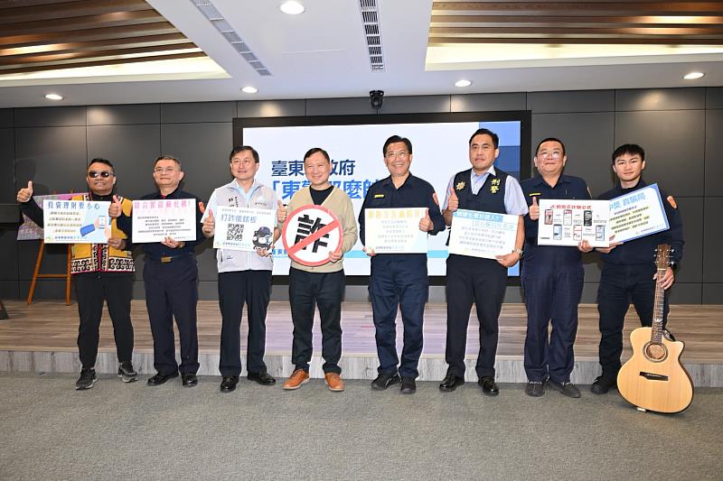 為強化大眾防詐意識,杜絕詐騙集團不法詐財,於今(24)日10時30分舉行「東警那麼帥」防詐記者會,由副縣長王志輝及警察局局長林宏昇主持,會中並邀請2位才華洋溢的員警—巡佐許東凱與警員那帥,透過動人歌聲將防詐心法融入旋律,讓生硬的政令宣導轉化為溫暖的視聽饗宴,展現臺東警方守護縣民財產的決心。