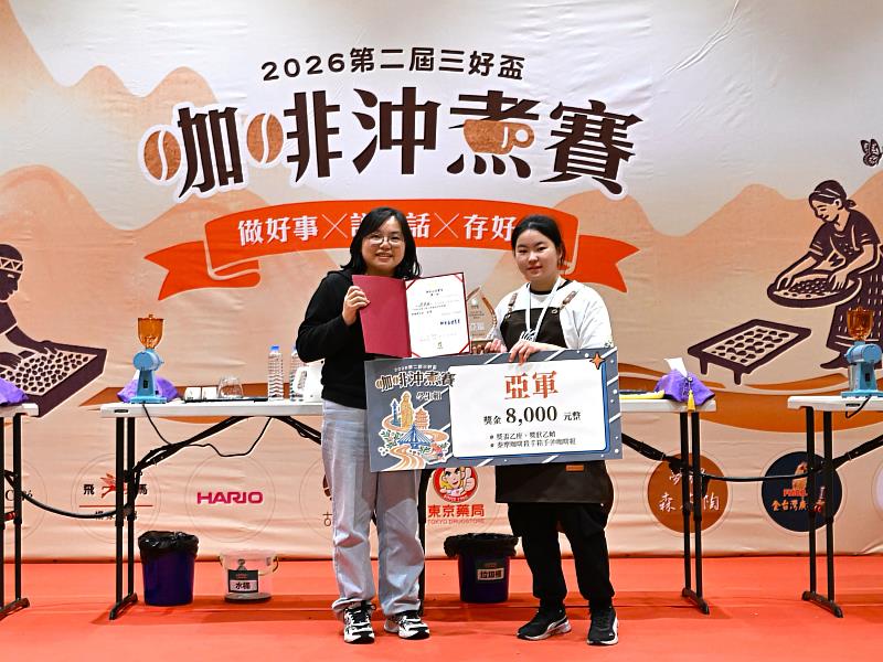 (中央社訊息服務20260304 17:18:44)2026第2屆「三好盃咖啡沖煮賽」日前於佛光山法寶堂舉行,社會組與學生組共48名選手參賽。選手須先通過兩輪杯測淘汰賽,方能晉級決賽。台中中山醫學大學健康產業科技管理學系大二學生李婕瑀在賽事中脫穎而出,獲得學生組亞軍並同時拿下「三好獎」,對以醫學與健康專業見長的中山醫大而言,此次成績也展現學生跨域學習的具體成果。