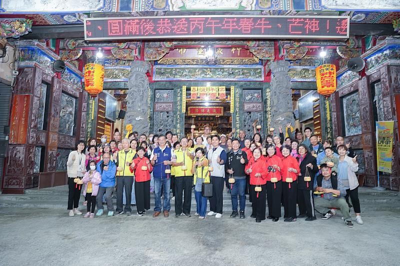 文化局說明,謝育哲局長於活動當晚與民眾一同提著燈籠漫步巷弄,在竹編工藝與夜間光影交織下,感受傳統節慶的溫度與社區創作的能量。隨後隊伍繞行嘉義市五穀王廟(大天宮)祈福,象徵傳統信仰與當代藝術的融合,也展現社區透過節慶儀式活化公共空間、凝聚居民情感的具體成果。