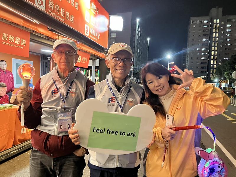 此外,來自美國,現年80歲的石谷若先生,也在燈會志工招募期間與友人一同報名參與,共同為燈會提供多元的外語服務,不僅強化外語接待能量,更能即時協助國際旅客了解燈區展演、活動資訊、美食位置及接駁動線,讓來自世界各地的旅客都能安心暢遊。