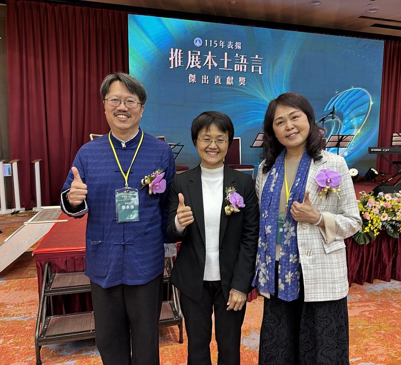 (中央社訊息服務20260306 10:17:14)響應推展本土語言,客家委員會主任委員古秀妃5日前往台大醫院國際會議中心,參加由教育部主辦的「115年表揚推展本土語言傑出貢獻獎頒獎典禮」,古主委除特別感謝得獎者在艱難環境下努力與堅持復振母語,並期許大家持續發揮影響力,同時喚醒社會的母語意識,讓母語永續傳承。