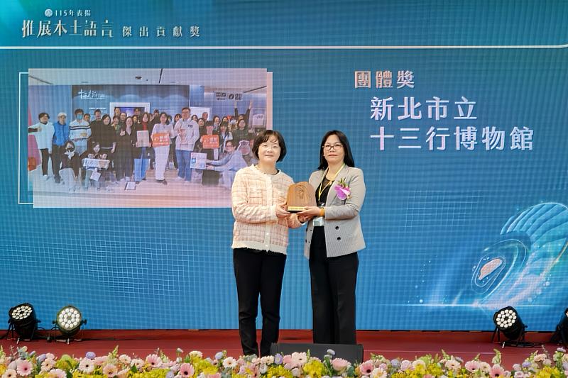 教育部自民國97年起創辦「推展本土語言傑出貢獻獎」,旨在表揚於本土語言創作、展演、傳播或出版推廣等面向具傑出貢獻之團體與個人,藉此帶動全民提振母語文化傳承,推動至今已是本土語言工作者的最高榮譽。十三行博物館憑藉長期深耕台語教育推廣,以及推動考古專業知識「台語文標準化」的卓越成果,在眾多推薦名單中脫穎而出,獲得這座極具指標性的團體獎項肯定。