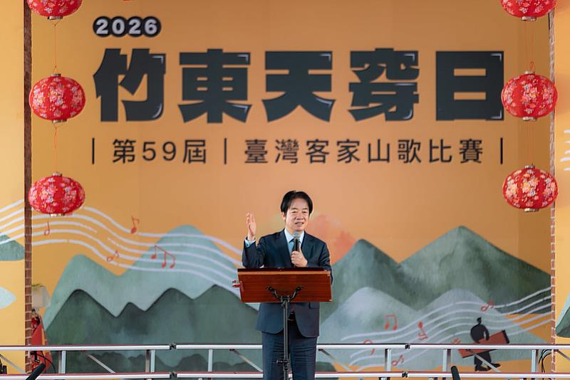 (中央社訊息服務20260307 18:10:28)2026第59屆「竹東天穿日臺灣客家山歌比賽」於3月7日至3月10日在竹東客家戲曲公園熱鬧登場,總統賴清德今(7)日在客家委員會副主任委員廖育珮、新竹縣竹東鎮鎮長郭遠彰等陪同下,出席比賽開幕式,以行動支持這項歷史悠久且具全國代表性的客家文化活動。
