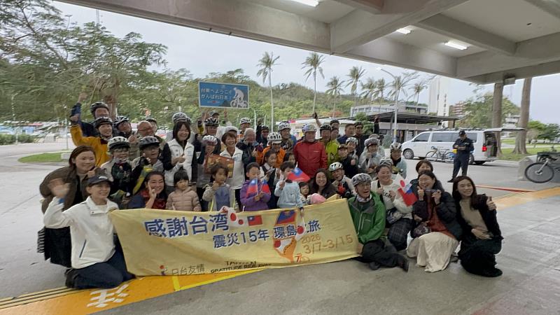 日本311大地震將屆滿15周年,為感謝台灣當年慷慨賑災,日本知名作家、同時擔任台東縣政府國際事務推動委員的一青妙,率領日台兩地33位單車愛好者,展開為期9天、全長約900公里的環島騎行謝恩之旅。車隊於3月9日下午抵達台東展開為期兩天的騎行,還在金峰鄉介達國小停駐,受到縣府及當地居民熱烈歡迎。