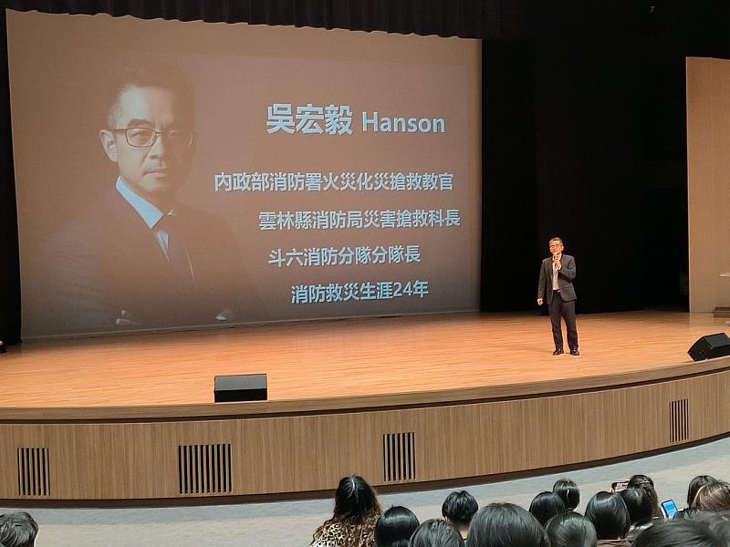 (中央社訊息服務20260311 15:27:33)國立雲林科技大學於3月11日舉辦一年級學生週會專題演講,特別邀請內政部消防署訓練中心消防防災專家吳宏毅專門委員蒞校演講,以「談賃居安全-居安思危」為題,向大一同學宣導校外賃居安全與火災防範觀念,提升學生防火防災意識,現場吸引眾多學生到場聆聽。