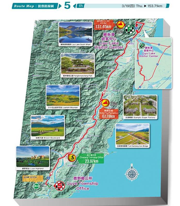 台東縣警察局表示,「幸福台9線站」全程153.71公里,起點設於台東縣鹿野鄉公所,終點為花蓮縣鯉魚潭遊客中心,在台東縣路段長約28公里,賽道沿著台9線北上,途經關山、池上、富里、玉里、瑞穗、光復、鳳林、吉安及壽豐等地區,19日上午10時從鹿野鄉公所正式起跑,沿途串聯花東縱谷多處客家聚落與特色景觀。賽事路線規劃包含2個登山點及2個衝刺點,賽況預期精彩激烈,也將透過國際轉播,向世界展現台灣東部壯麗的自然景觀與人文風情。