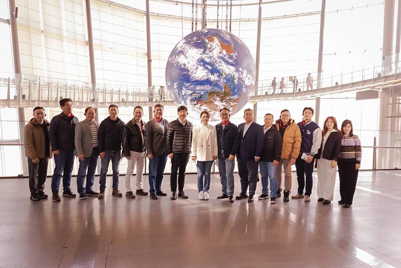 市府團隊接著前往考察「日本科學未來館」,該館座落於東京未來感十足的御臺場地區,是日本的國家級科學博物館。高虹安市長指出,該館由日本政府科學技術振興機構營運,建築空間規劃共分7層樓,設有3個常設展區、球幕劇院及未來創造實驗室。其代表展品為懸掛於1樓至6樓挑高空間的「Geo-Cosmos」,這是一個巨大的球體螢幕,每日讀取氣象衛星資料,將雲層流動與地球影像即時投射於球體表面。除了科學數據,該裝置亦播放學者及藝術家合作的影像作品,用藝術回應全球議題。