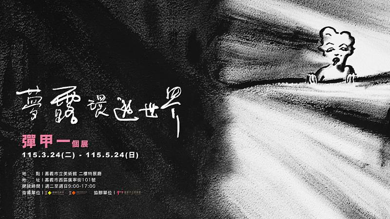 (中央社訊息服務20260325 10:51:58)嘉義市立美術館(嘉美館)申請展《2026彈甲一個展「夢露環遊世界」》於115年3月24日(二)起至5月24日(日)在嘉美館側棟2樓特展廳展出。此次展覽以彈甲一近年所創作的「夢露」系列為主軸,以末世中「夢露」的孤影直面氣候災難與末法寓言。