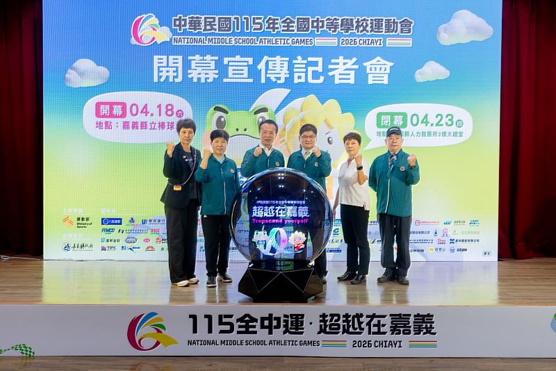 (中央社訊息服務20260325 11:36:13)運動部成立後首場全國性綜合體育盛事「中華民國115年全國中等學校運動會」(以下簡稱全中運),4月18日至23日將在嘉義縣熱情登場。24日於運動部大禮堂舉行開幕宣傳記者會,運動部常務次長洪志昌與嘉義縣長翁章梁共正式揭曉開幕典禮內容及選手之夜演出卡司。