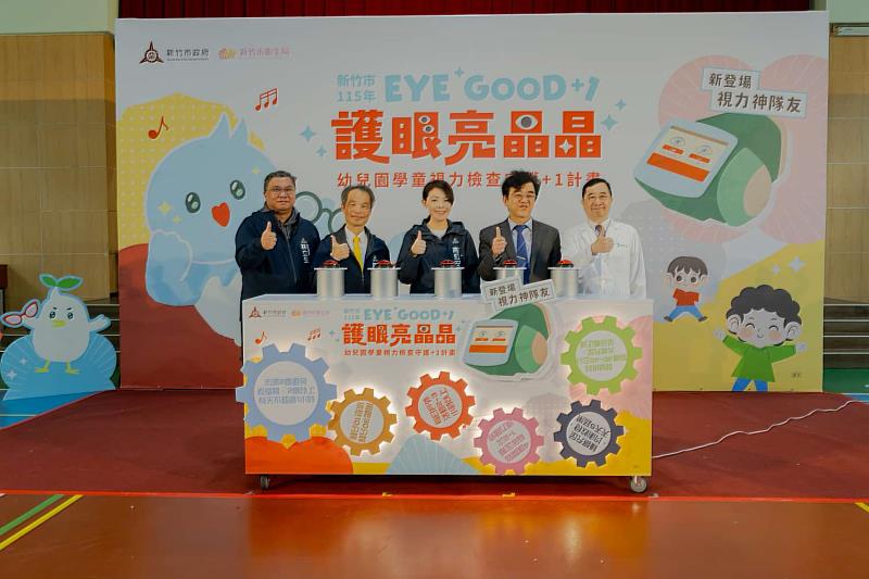 (中央社訊息服務20260325 14:07:47)視力健康攸關幼童成長發展,新竹市政府今(25)日在西門國小舉辦「EYE GOOD+1 護眼亮晶晶」幼兒園學童視力檢查守護+1計畫發布會,由市長高虹安宣布計畫正式啟動。高市長指出,此次計畫為全國首創,特別導入醫師與護理師巡迴全市公私立幼兒園,提供專業視力篩檢服務。預計逾萬名學童受惠,落實「早期介入、及時矯正」,守護孩子視力發展黃金期。