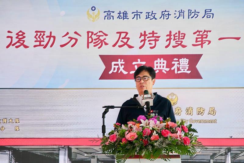 為超前部署、提升區域救災救護量能,高雄市政府消防局今(25)日舉辦「後勁分隊及特搜第一分隊」成立典禮,正式進駐楠梓後勁地區。高雄市長陳其邁出席時表示,楠梓科學園區聚集先進半導體製程與封裝產業,加上後勁地區及中油宿舍聚落,消防與救災需求日益提升;市府近年持續強化消防量能,期盼中央與地方攜手支持,保障消防同仁執勤安全,並強化產業聚落與地方居民生命財產安全。