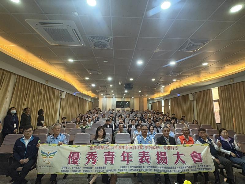 (中央社訊息服務20260326 14:12:40)金門縣各界慶祝115年青年節,於3月25日下午在縣府多媒體視聽室舉辦「優秀青年表揚大會」,以「夢想成形・青春前行」為主題,表揚社會優秀青年24位、中等學校優秀青年35位,共計59位,表彰青年在各領域的傑出表現與貢獻。