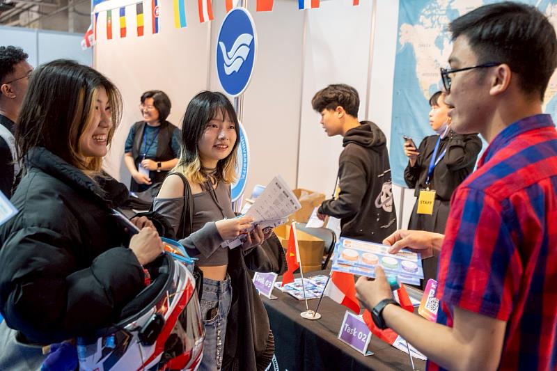 在今年的校園徵才博覽會中,國際事務處特別與教務處實習暨就業輔導組合作,不僅於現場設置國際學生服務專區,也特別標示對境外生友善的企業,讓學生能更清楚了解不同產業的人才需求、實習與就業機會,吸引超過300位境外生參與。現場透過問卷調查、企業交流任務及資訊諮詢等方式,蒐集國際學生對於在臺實習與就業的需求與回饋,促進學生與企業間的互動與媒合,進一步強化校園徵才活動的國際連結與多元人才交流。