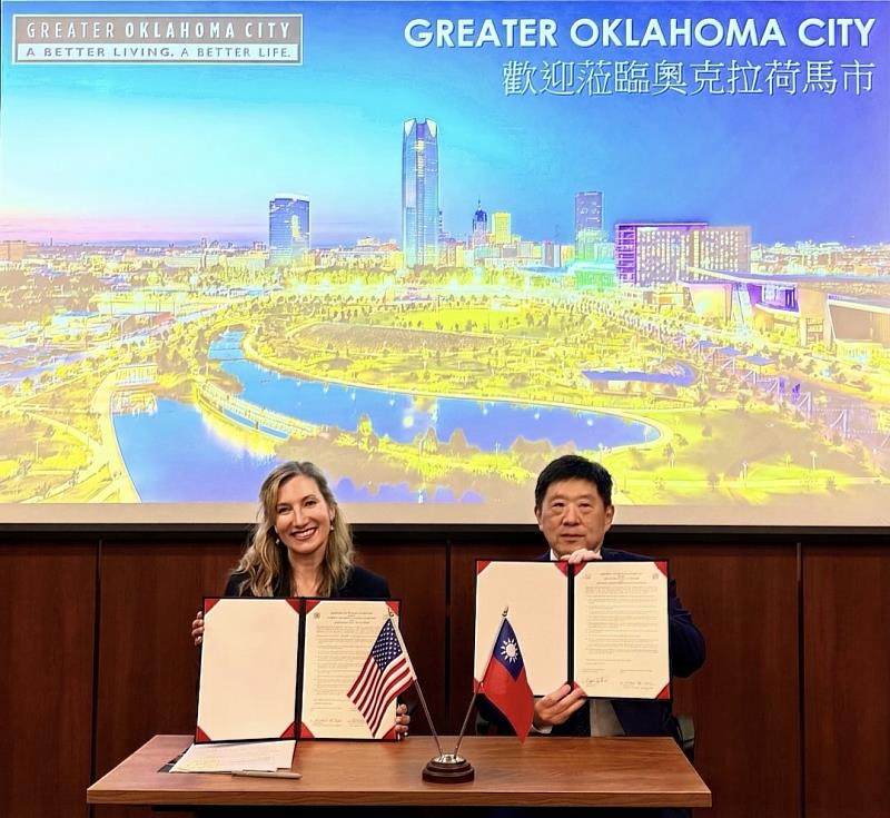 (中央社訊息服務20260331 10:14:08)台北市進出口商業同業公會(IEAT)於3月30日由美洲委員會主任委員宗緒順率團前往美國奧克拉荷馬州與大奧克拉荷馬市商會(Greater Oklahoma City Chamber)簽署合作備忘錄締結姊妹會。此次IEAT能與Greater OKC Chamber締盟是經由駐休士頓經濟組倪伯嘉組長的穿梭安排,不僅為IEAT在奧克拉荷馬州的首個姊妹會,更是拓展美國中南部合作網絡的重要一步,為台灣企業進一步連結奧克拉荷馬州產業資源、掌握美國中南部市場新商機。