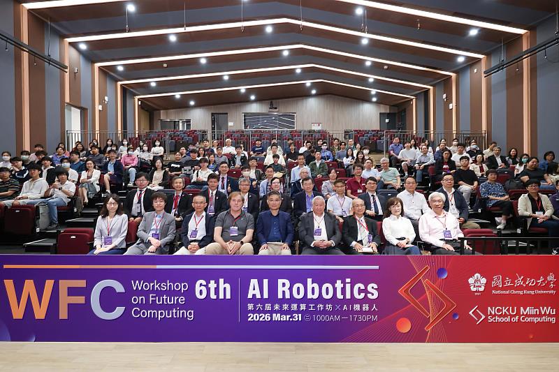 (中央社訊息服務20260401 10:10:44)成大AI論壇再度登場,國立成功大學敏求智慧運算學院3月31日在勝利校區旺宏館舉辦「第6屆未來運算工作坊(Workshop on Future Computing, WFC)」。本屆⼯作坊以「AI機器⼈ (AI Robotics)」為核⼼,深度探討感知、機器⼈應⽤與學習控制等技術,聚焦於機器⼈與精準醫療健康照護的實務應⽤。現場邀集美國、日本、臺灣4位國際頂尖學者現身分享,並於旺宏館1樓開放空間展出26組精選研發成果,展現成功大學將學術轉化為產業解⽅的強⼤動能,深度議題探討與富豐的研發成果展出,也為即將在5月、10月登場的AI論壇系列活動留下精彩伏筆。