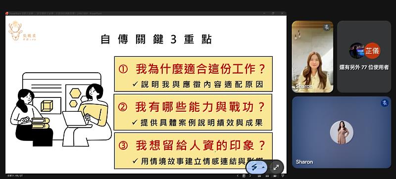 整體課程安排由校友服務中心統籌規劃,從求職初步準備到實際面試表現,形成一套具連貫性的學習脈絡。活動過程中,講師與學生之間的即時交流,也讓內容更貼近實際情境,提升學習效果。