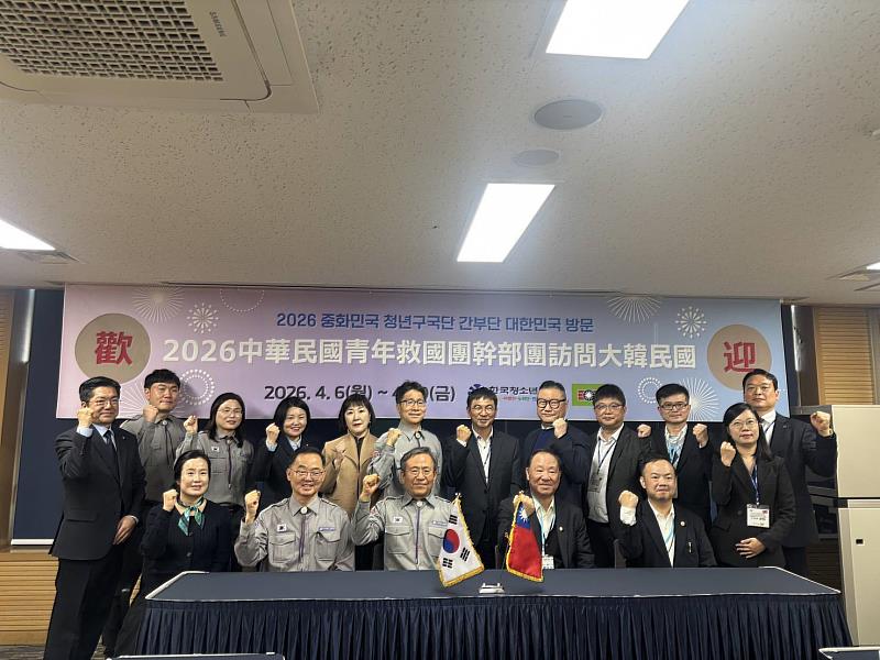 (中央社訊息服務20260407 14:21:42)中國青年救國團主任葛永光4月6日至10日率「2026年幹部韓國訪問團」赴韓交流,拜會韓國青少年聯盟,並與韓國青少年聯盟金賢執總裁共同簽署合作備忘(MOU);另由首爾青年旅館與救國團復興青年活動中心簽訂交流活動合作意向書,象徵臺韓青年組織合作關係再向前邁進,為未來青年互訪、文化交流及機構合作奠定更穩固基礎。