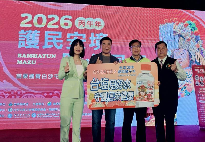 傳承逾兩百載的白沙屯媽祖進香,以「無固定路線、全憑媽祖旨意」的神蹟傳奇聞名,今年更罕見出現「三媽逗陣行」盛況,吸引廣大信眾追隨,報名人數再創新高!臺鹽公司董事長丁彥哲表示,臺鹽通霄精鹽廠為國內重要的產鹽與製水基地,與地方發展緊密相連,秉持「取自在地、回饋在地」的精神,連續11年不間斷應援好水,陪伴信眾完成急行軍般的信仰之路。