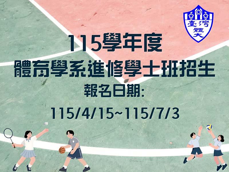 為提供多元進修管道,培育優秀體育專業人才,臺灣體育運動大學正式啟動115學年度體育學系進修學士班招生作業。本次招生採「全書面審查」方式辦理,免面試即可報名,提供在職人士及有志投入體育領域者更具彈性與友善的升學途徑。