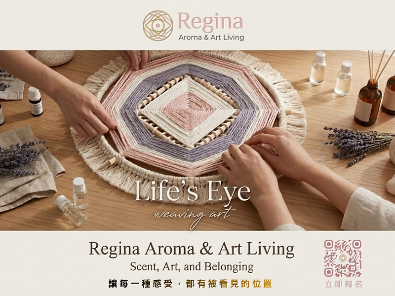 本次工作坊以「編織心流:療癒創作與感官體驗」為主題,透過觸覺、視覺、嗅覺、聽覺與身體節奏的多感官引導,帶領參與者進入一種專注而穩定的心流狀態。課程由Regina Aroma & Art Living主理人親自設計與執行,結合香氛生活美學與纖維媒材,讓每一位參與者在線線交織之間,慢慢放下日常壓力,找回內心的平衡與靈感。