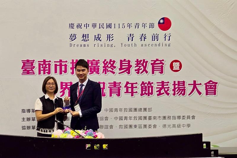 國立臺南大學109級EMBA校友、現任臺南市議員林冠維,繼2024年榮獲南大服務類傑出校友後,2026年再獲肯定,榮獲「2026年度臺南市社會優秀青年」表揚,展現長期投入公共事務與社會服務的成果,也體現南大EMBA結合理論與實務、關注社會參與的人才養成方向。