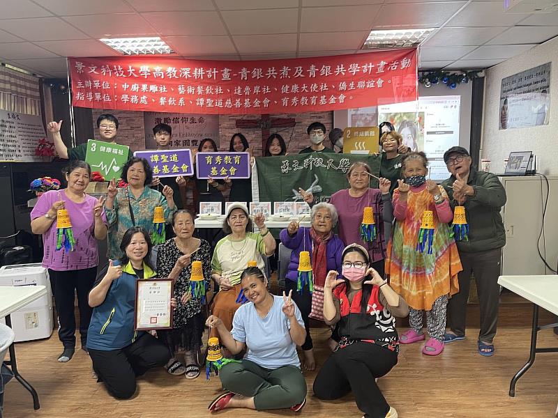 (中央社訊息服務20260415 15:24:44)由教育部深耕計畫及育秀教育基金會與譚聖道慈善基金會贊助組成的景文科技大學「秀秀大寶貝義廚團」,4月14日由僑生聯誼會學生社團接力,挺進新北市烏來區信賢部落銀髮健康站,與當地的泰雅族長者展開一場跨文化的「青銀共學共餐」活動,學生們不僅帶來充滿吉祥寓意的DIY手作,更親自下廚烹煮帶來豐富營養的料理,耆老們也快樂的介紹部落趣事,歡度共餐時光。